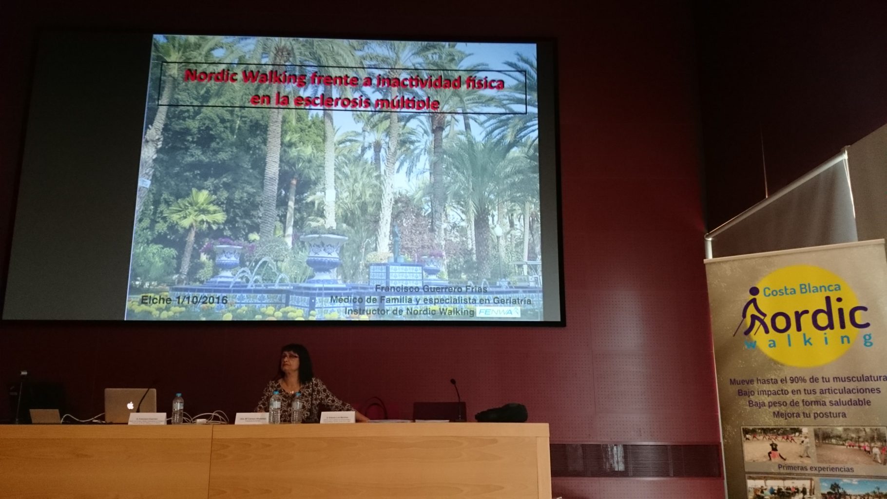 Durante las jornadas técnicas y las ponencias en El Hospital del Vinalopó, estuvimos presentes y colaborando activamente. Una de las ponencias fue llevada a cavo por Francisco Guerrero Frias, médico de familia especializado en geriatría e instructor de Nordic Walking por la FENWA. La ponencia cuyo titulo era “NORDIC WALKING FRENTE A INACTIVIDAD FÍSICA, TAMBIÉN EN ESCLEROSIS MÚLTIPLE” nos dio la oportunidad de conocer desde el punto de vista de este facultativo, lo beneficioso que es practicar este deporte para mitigar los efectos de esta enfermedad.