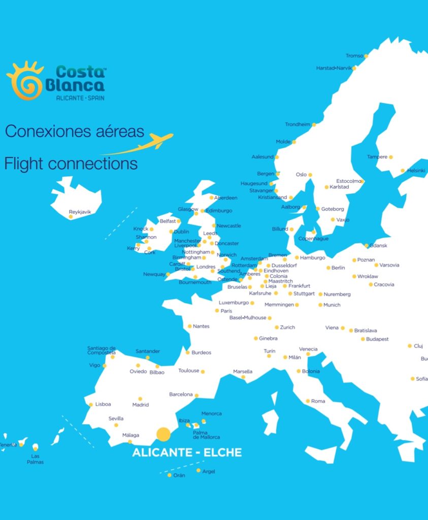 • Conectividad aérea con más de 110 destinos y tren de alta velocidad AVE.