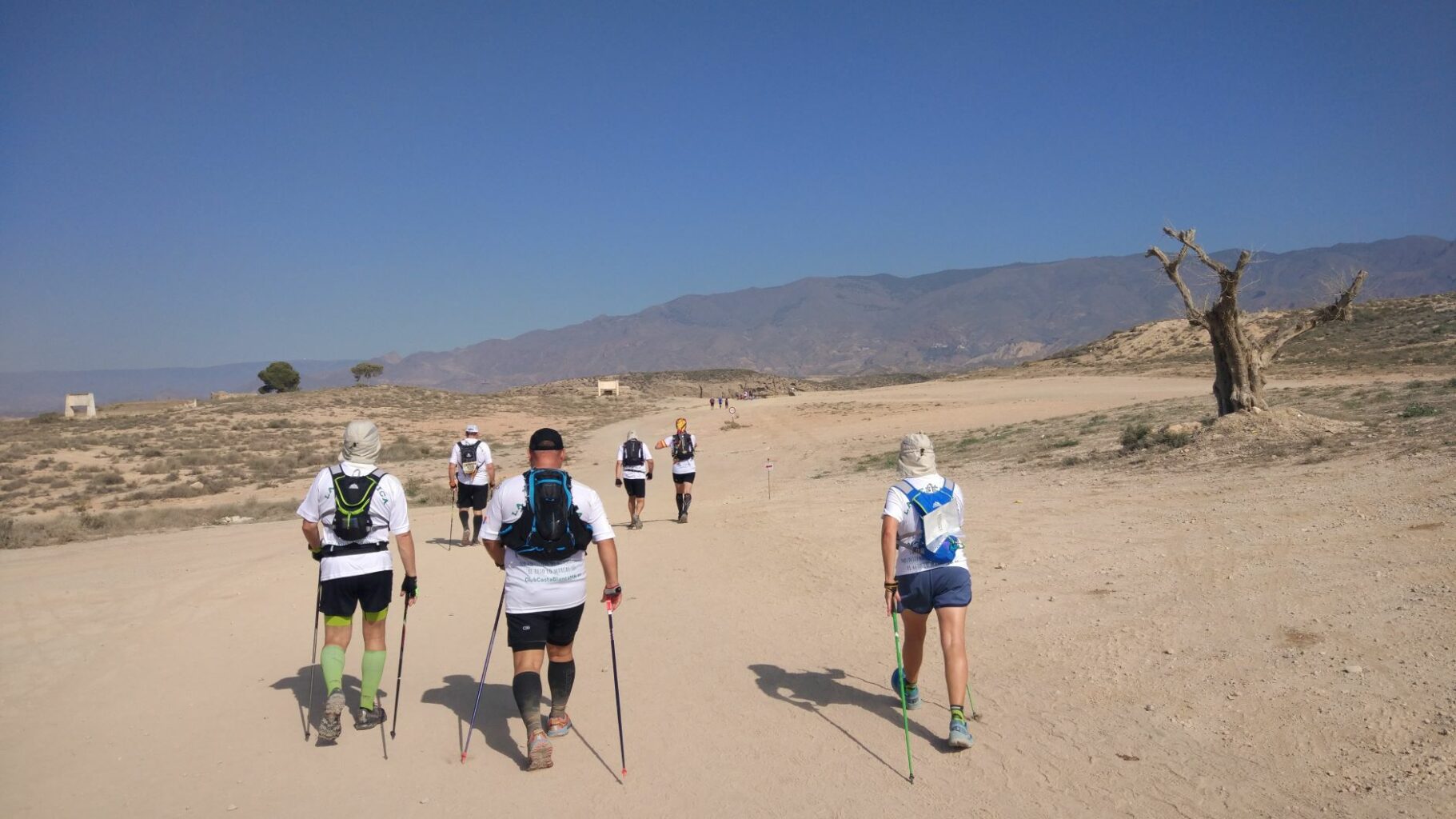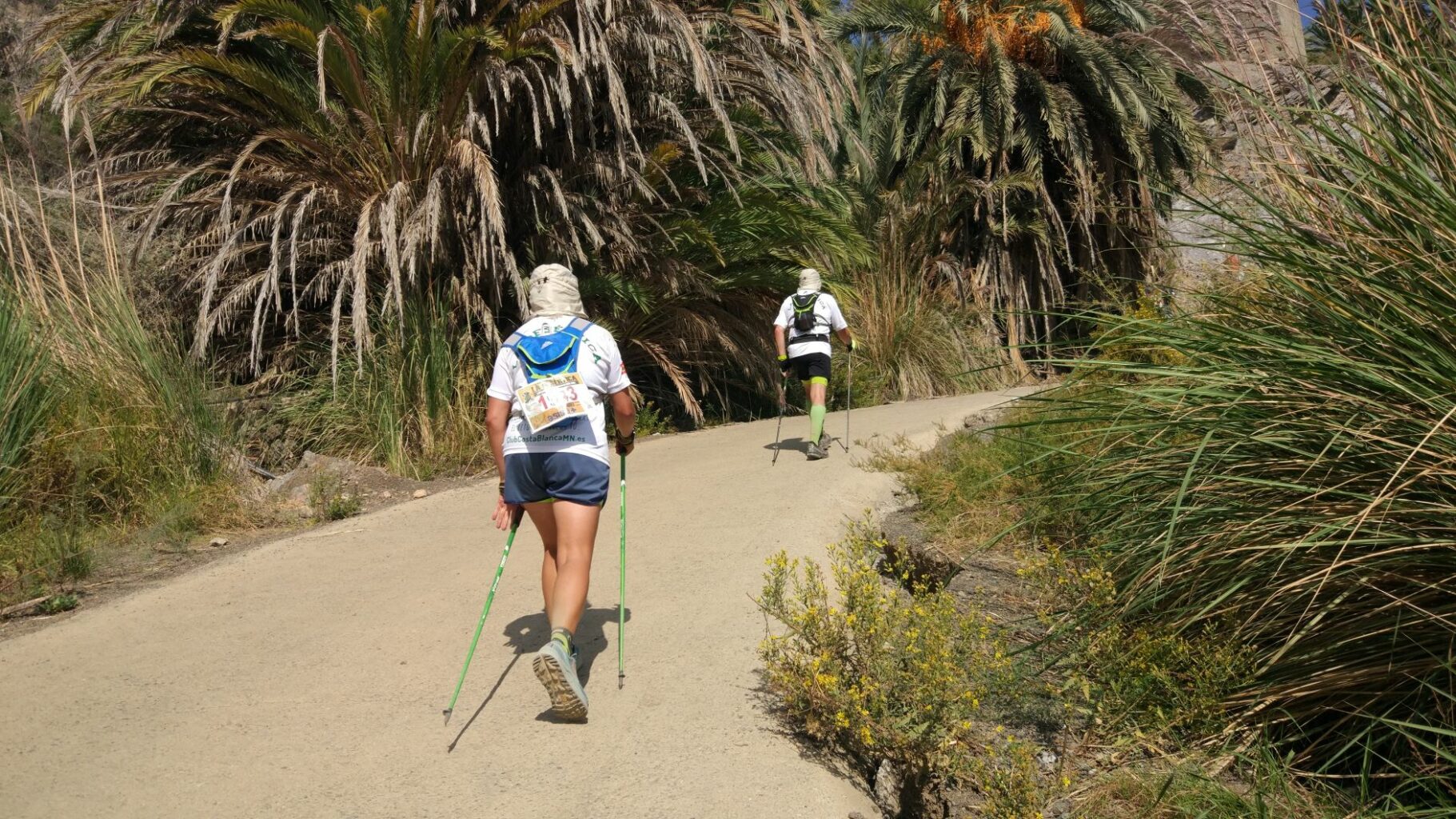 Ya hay otros precedentes en pruebas de ultra trail donde se ha participado en nuestra modalidad deportiva; 90K Murcia-Caravaca de la Cruz, 101Km de Ronda y como en la III edición de La Desértica del año pasado de 70 Km, que al final fueron 73Km, donde desde el Club de Marcha Nórdica Costa Blanca Elx participaron cuatro marchadores; Peli Torres y Héctor Lucas (que ya tenían experiencia en estas distancias), pero José Carlos Jaén y Javier Albarranch era la primera vez que se enfrentaban a un desafió de esta altura, también se vieron otros participantes de MN. Fue una prueba muy dura debido al terreno muy pedregoso y el calor que hizo, pero con la ayuda que nos aporta la técnica de la Marcha Nórdica en este tipo de distancias y terrenos, sobre todo se nota cuando en las subidas al ayudarse con el impulso d los brazos y así hacerlas mas llevaderas y en las bajadas, una bajada terrible de más de tres kilómetros en el tramo final, cuando las fuerzas flaqueaban, es increíble la ayuda que nos pueden dar los bastones, aportando más seguridad, sin duda gran parte de que estos cuatro valientes terminasen este reto se la deben a su par de bastones.