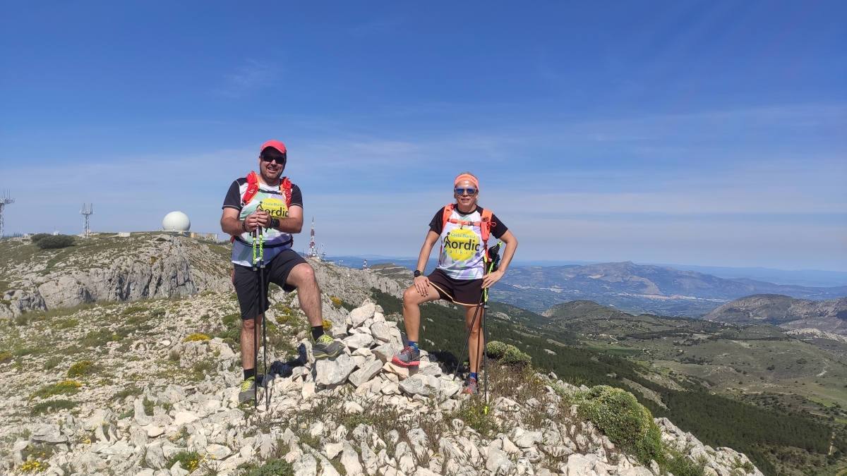 De ahí surgió la curiosidad para descubrir la Marcha Nórdica en una ruta organizada por un grupo de Marcha Nórdica de Benidorm que realizaron una salida al Puig Campana de Finestrat, nada más probarlo ya tenía la premonición que me iba a enganchar, a los días ya estaba buscando unos bastones específicos de MN, el único lugar donde los pudimos encontrar fue en el Decathlon, eran unos bastones fijos de aluminio, con ellos empecé mis primeros pasos con este deporte tan apasionante, sin técnica ninguna y apenas coordinación, pero siempre me acompañaban a mis rutas a partir de ese momento, pero estaba claro que así no podía seguir, fue en un viaje a la Sierra de Gredos, precisamente en la espectacular ruta desde la Plataforma hasta la Laguna Grande, unos 14Km y 5 horas que dieron mucho para pensar, nada más volver a casa nos pusimos a buscar cursos de instructores para formarnos, el primero que encontramos era en Madrid, pues nada, ahí que nos fuimos a realizarlo, a partir de ese momento lo que era una afición se estaba convirtiendo en un trabajo, impartiendo nuestros primeros cursos de iniciación y sesiones de entrenamiento, trasmitiendo nuestra pasión por este deporte para darlo a conocer en nuestra zona, desde entonces no hemos parado de formarnos y ganar experiencia…